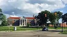 After 40 years at its original location just north of Flint in Mount Morris Township, Powers relocated to downtown Flint for the 2013-14 school year, with historic Fay Hall serving as the main academic building. As part of a 36 million dollar development approved in 2010, Fay Hall was restored and a 75,000-square-foot addition containing a gymnasium, chapel, library, theater and media center was added to the campus.[5]