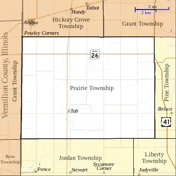Prairie Township is one of twelve townships in Warren County, Indiana, United States. According to the 2010 census, its population was 257 and it contained 117 housing units; the population density is the lowest of any township in the county, at 6.1 inhabitants per square mile (2.4/km2).[2]