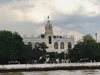 Praisaniyakarn, written as Praisaneeyakan (Thai: ไปรษณียาคาร; lit: Post Office Building) is the original location of the Post Department, which was Thailand’s first postal office. The office stood on the eastern bank of Chao Phraya River, at the mouth of Khlong Ong Ang (Ong Ang Canal) in Phra Nakhon side near the area of Pak Khlong Talat, right on the south of Memorial Bridge. It is a three-storey striking white Western-style building.