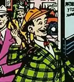 The original Prankster is Oswald Loomis, a criminal and conman who uses elaborate practical jokes and publicity campaigns to commit crimes.[3] In his debut in Action Comics #51, the Prankster and his assistants break into a series of banks and force the employees to accept money. They even throw money at people in the streets. After he becomes famous for this joke, the Prankster enters yet another bank - and this time takes all the money, also taking Lois Lane hostage. Superman, who had suspected the Prankster was up to no good, follows him to his lair. The Prankster seals his henchmen and Lois behind a sheet of glass and releases deadly gas, but Superman manages to rescue them and retrieve the money, while the Prankster is able to escape.[4]