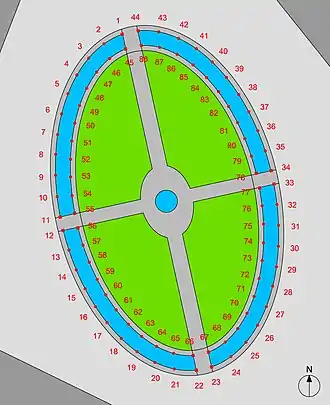 Prato della Valle (Prà de ła Vałe in Venetian) is a 90,000-square-meter elliptical square in Padua, Italy. It is the largest square in Italy,[1] and one of the largest in Europe. Today, the square is a large space with a green island at the center, l'Isola Memmia, surrounded by a small canal bordered by two rings of statues.