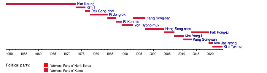 Kim Tok-hunKim Jae-ryongPak Pong-juKang Song-sanKim Yong-ilHong Song-namKang Song-sanYon Hyong-mukRi Kun-moRi Jong-okPak Song-cholKim Il (politician)Kim il-sung