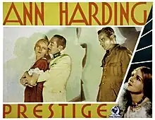 Prestige is a 1932 American pre-Code drama film directed by Tay Garnett and written by Tay Garnett, Rollo Lloyd and Francis Edward Faragoh. The film stars Ann Harding, Adolphe Menjou, Melvyn Douglas and Guy Bates Post.[1][2][3] The film was released on January 22, 1932, by RKO Pictures.