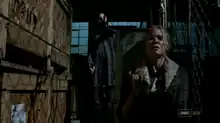 ![]() Andrea hides from The Governor in an abandoned factory. | |