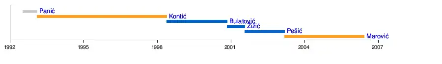 Montenegrin4 November 200024 July 2001262 daysSNPResigned on 29 June 2001, in protest over the extradition of Slobodan Milošević to the ICTY.