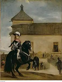 Prince Baltasar Carlos in the Riding School, Spanish: La lección de equitación del príncipe Baltasar Carlos, is a painting by Diego Velázquez, painted at the Palacio del Buen Retiro outside Madrid, probably in 1636.[1]: 272 There are two versions of the painting, one on loan to the National Gallery in London, the other in the Wallace Collection in the same city;[2]: 20 [3] the latter is sometimes attributed to the studio of Velázquez, sometimes to Velázquez himself.[3][1]: 272