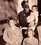 Elena (left) with her two younger sisters, Irina (right) and Sophie held by Michael I of Romania