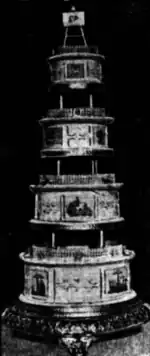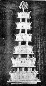 The cake was given structural integrity by the addition of steel rods with pillar drums between the tiers.[56]