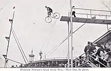 ![]() Postcard of Powsey's bicycle dive from Brighton's West Pier, in 1905 | |