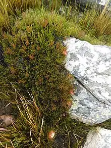 It is found on mountain tops and their steep upper slopes, between 1,600 and 2,000 metres in altitude.[4][5] It occurs in montane fynbos habitat in sandstone-derived substrates, on south-facing slopes.[4]