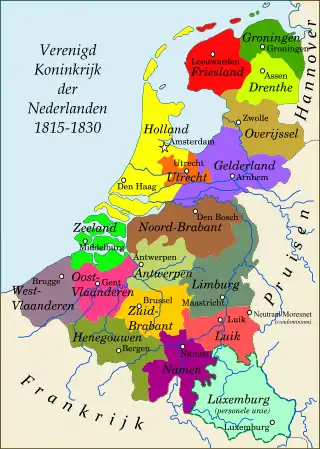 ![]() The United Kingdom of the Netherlands with the Province of Limburg in greyish green. | |||||||||||||