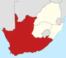 - ↑ These statistics do not include the Prince Edward Islands (335 km2 or 129 sq mi, with no permanent residents), which are South African territories in the sub-Antarctic Indian Ocean but part of the Western Cape for legal and electoral purposes.