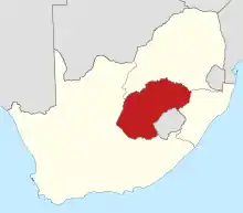 | Free State | Freistata (Sotho) | Bloemfontein | Bloemfontein | 129,825 km2 (50,126 sq mi) | 2,964,412 | 22.8/km2 (59/sq mi) | ![]() |
