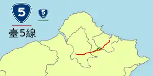 • Prov 5a: This is the old segment of Highway 5 in Xizhi. The route serves downtown Xizhi while the parent route bypasses it. The new section, now signed as Highway 5, is known as Xin Taiwu (New Highway 5) Road. The total length is 8.623 km.