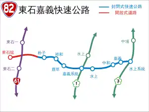 Provincial Highway 82 (Chinese: 台82線) is an expressway, which begins in Dongshi Township, Chiayi County and ends in Shuishang Township, Chiayi County on National Highway No. 3.
