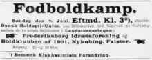 Newspaper advertisement for the final match on 8 June 1913 between Frederiksborg IF Hillerød and B 1901.