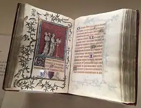 The Psalter of Bonne de Luxembourg is a small 14th-century illuminated manuscript in tempera, grisaille, ink and gold leaf on vellum.[1] It is held in the collection of The Cloisters, New York, where it is usually on display.