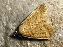 Psammotis pulveralis is a moth of the family Crambidae described by Jacob Hübner in 1796. It is found in Iran and the southern part of Europe, although it dwells further north on occasion, and at times even establishes a short-lived population, as happened in 1869 near Folkestone and the Isle of Wight.[1]