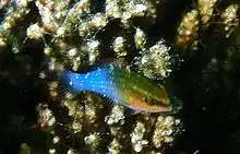 Pseudochromis cyanotaenia, the surge dottyback or blue-barred dottyback, is a species of ray-finned fish from the Western Pacific which is classified in the family Pseudochromidae. It occasionally makes its way into the aquarium trade. It grows to a length of 6 cm.[1]