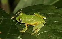 - ↑ IUCN SSC Amphibian Specialist Group (2020). "Pseudophilautus femoralis". IUCN Red List of Threatened Species. 2020: e.T58841A3074747. doi:10.2305/IUCN.UK.2020-3.RLTS.T58841A3074747.en. Retrieved 16 November 2021.