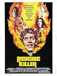 Psychic Killer is a 1975 American supernatural horror film directed by Ray Danton and written by Greydon Clark, Mikel Angel and Ray Danton. The film stars Paul Burke, Jim Hutton, Julie Adams, Nehemiah Persoff, Neville Brand and Aldo Ray.[1][2][3] The film was released in December 1975, by AVCO Embassy Pictures. Originally released under the alternate title The Kirlian Force, it was changed to Psychic Killer to emphasize the more sensational horror scenes of the film.