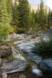 Ptarmigan Falls is a waterfall located in Glacier National Park, Montana, US. Ptarmigan Falls has a series of cascades and at least one drop of over 30 feet (9.1 m) as it descends downstream along Ptarmigan Creek. The falls can only be seen by hiking west on the Ptarmigan Trail from Swiftcurrent Auto Camp Historic District in the Many Glacier region of the park.[2][3]
