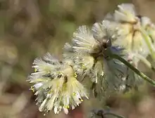 It was first described in 1849 by Alfred Moquin-Tandon as Trichinium auriculifolium,[1][6] but was redescribed in 1882 by Ferdinand von Mueller as belonging to the genus, Ptilotus.[1][2]