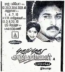Pudhu Pudhu Arthangal (transl. New Meanings)[1] is a 1989 Indian Tamil-language romantic drama film, written and directed by K. Balachander. The film stars Rahman (credited as Raghu) and Geetha, with Sowcar Janaki, Jayachitra, Janagaraj and Sithara (in her Tamil cinema debut) in supporting roles. It was released on 28 October 1989. The film won a Filmfare Award South, and two Tamil Nadu State Film Awards.
