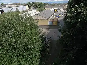 Site of the former Pudsey Greenside station (2016), looking east from the bridge of Carlisle Road