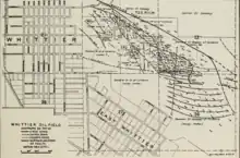 A commercial discovery was made in 1897, for what would become the Whittier Oil Field, when a well was drilled to a depth of 984 feet. The location was in the central area of production. By 1903, about 100 wells were in operation and by 1924, there were 163 commercial wells in operation.[13]