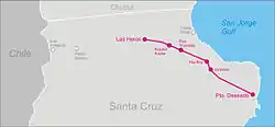 - ↑ "Para los nostálgicos, volverá el tren a Puerto Deseado". La Nación. 23 June 2013.
