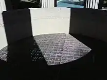 The well within the temple was covered with a grate to prevent thrill-seekers from jumping in and riding the water down the canal.[2] Since 2004, water no longer flows through the temple, but instead is diverted to a nearby treatment plant where chloramine added at the Sunol treatment plant is removed before the water enters the reservoir, to avoid possible ecological damage from the additive.[2] Water fed into the water supply is treated again with chloramine at a plant in San Bruno.[3]