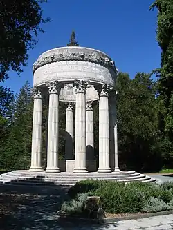 The Pulgas Water Temple is a stone structure in Redwood City, California, United States, designed by architect William G. Merchant. It was erected by the San Francisco Water Department to commemorate the 1934 completion of the Hetch Hetchy Aqueduct and is located at the aqueduct's terminus; originally water flowed through a vault under the temple itself, but new requirements for treatment require it to be diverted to a plant nearby. The name comes from Rancho de las Pulgas, an early Spanish land grant. Pulgas is the Spanish word for "fleas", which were encountered by early Spanish explorers of the area.