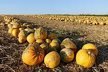 Field of Cucurbita pepo var. styriaca, Austria, ready for mechanical harvesting