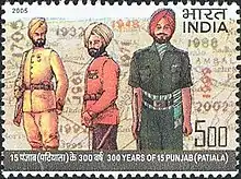 2005 postal stamp on 300 years of 15 Punjab (former 1st Patiala)