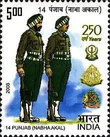 2008 postal stamp on 250 years of the 14th Battalion - (former Nabha Akal Infantry)