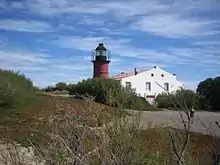The main attractions are a colony of elephant seals and an active lighthouse built in 1905. The buildings around the lighthouse have been converted into a hotel and restaurant, to accommodate visitors to the area. The 14-metre-high (46 ft) cast-iron lighthouse tower contains a Fresnel lens, which emits a pattern of three white flashes every twenty-five seconds.[1]
