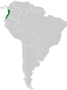 The purple-chested hummingbird (Polyerata rosenbergi) is a species of hummingbird in the family Trochilidae. It is found in Colombia and Ecuador. Its natural habitats are subtropical or tropical moist lowland forest and heavily degraded former forest. It is commonly hunted for the supposed medicinal properties of its beak by indigenous peoples in the area.
