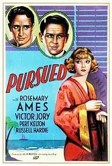 Pursued is a 1934 American drama film directed by Louis King and starring Rosemary Ames, Victor Jory and Russell Hardie. Produced and distributed by Fox Film Corporation. It is based on a story from the Saturday Evening Post, The Painted Lady, by Larry Evans. It was previously filmed by Fox as a silent When a Man Sees Red in 1917.[1]