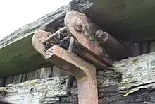 Dispatch is notable for its use of, and the sole surviving remains of, Fell's Patent Knees. These were a patent innovation from 1839 by Jonathan Fell of Workington, Cumberland,[26] and were part of the development of the iron and wood composite hull. Ships before this had been built from oak, where the strong curved brackets needed to join the deck into the hull side frames could be found as naturally grown 'knees' from the angles between major branches and the trunk. In the post-Nelsonic era there was a general shortage of shipbuilding timber, particularly oak, one of the few species with strong enough branch attachments to provide knees.