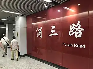 Pusan Road (Chinese: 浦三路; pinyin: Pǔsān Lù) is a station on Line 11 of the Shanghai Metro, which opened on August 31, 2013.[1]