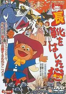 The film is particularly notable for giving Toei Animation its mascot and logo and for its roll call of top key animators of the time: Yasuo Ōtsuka, Reiko Okuyama, Sadao Kikuchi, Yōichi Kotabe, Akemi Ōta, Hayao Miyazaki and Akira Daikubara, supervised by animation director Yasuji Mori[3] and given a relatively free rein and adequate support to create virtuosic and distinctive sequences, making it a key example of the Japanese model of division of labour in animation by which animators are assigned by scene rather than character. Most famous of these sequences is a chase across castle parapets animated in alternating cuts by Ōtsuka and Miyazaki[7] which would serve as the model for similar sequences in such later films as Miyazaki's feature-directing début The Castle of Cagliostro and The Cat Returns.[8] Miyazaki is also the manga artist of a promotional comic book adaptation of the film originally serialised in the Sunday Chūnichi Shimbun during 1969, in which it is credited to Tōei Dōga as a whole, and republished in 1984 in a book about the making of the film.[9] The film was re-released 9 years later in the 1978 Summer Toei Manga Matsuri on July 22.