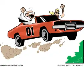 Cole and Brent in one of several Dukes of Hazzard scenes