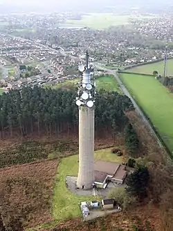 Pye Green BT Tower is a 96.9-metre (318 ft) tall telecommunication tower built of reinforced concrete at Pye Green, Staffordshire, England (grid reference SJ987142). Standing on the far southern edge of Cannock Chase, it is one of fourteen telecommunication towers in the United Kingdom built of reinforced concrete. Pye Green was constructed as part of the British Cold War "Backbone" radio communications network.