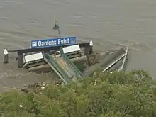 The wharf was destroyed during the January 2011 Brisbane floods.[3] A temporary replacement opened on 18 April 2011.[4][5] The temporary wharf closed in early 2015 to allow a new permanent wharf to be built. The new wharf opened on 24 April 2015.[6] The terminal was damaged in the 2022 eastern Australia floods and reopened on 1 November 2022.[7]