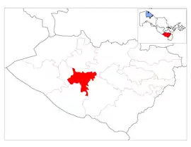 Qarshi District is a district of Qashqadaryo Region in Uzbekistan. The capital lies at the city Qarshi.[1] It has an area of 910 km2 (350 sq mi)[2] and its population is 252,600 (2021 est.).[3] The district consists of one city (Beshkent), 15 urban-type settlements (Fayzobod, Saroy, Gʻubdin, Lagʻmon, Kuchkak, Xonobod, Shilvi, Qovchin, Nuqrabod, Yertepa, Navroʻz, Jumabozor, Mustaqillik, Mirmiron Yangi xayot) and 15 rural communities.[1]