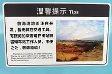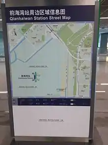 Qianhaiwan station (simplified Chinese: 前海湾站; traditional Chinese: 前海灣站; pinyin: Qiánháiwān Zhàn; Jyutping: Cin4 Hoi2 Waan1 Zaam6) is a station on the Line 1, Line 5 and Line 11 of the Shenzhen Metro in Shenzhen, Guangdong Province, China. Line 1 platforms opened on 15 June 2011, Line 5 platforms opened on 22 June 2011, and Line 11 platforms opened on 28 June 2016. Qianhaiwan Station is located under Chenwen Road in Shenzhen's Nanshan District.[1]