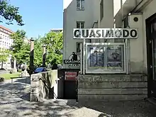 Quasimodo is a music venue in the Charlottenburg district of Berlin. It is located on the corner of Kantstraße and Fasanenstraße in the basement of the building of the Delphi Filmpalast, a former dance hall and movie theater which is also home to the Quasimodo Café and the Vaganten Bühne theatre. The club offers accommodation for up to 350 seated guests. Rock, Latin music and world music are also presented in concerts along with its more traditional emphasis on modern jazz, blues, soul and funk. Its programme features renowned international artists as well as musicians from the local Berlin and national scene.
