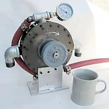 With a suitably redesigned housing to allow for thermal expansion, the same rotor design has been demonstrated as a steam engine.