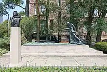 In addition to these monuments, a statue of Robert Raikes and Norman Bethune are also situated southwest of the park. The statue of Bethune was commissioned by the University of Toronto Faculty of Medicine and was unveiled in 2014.[26]